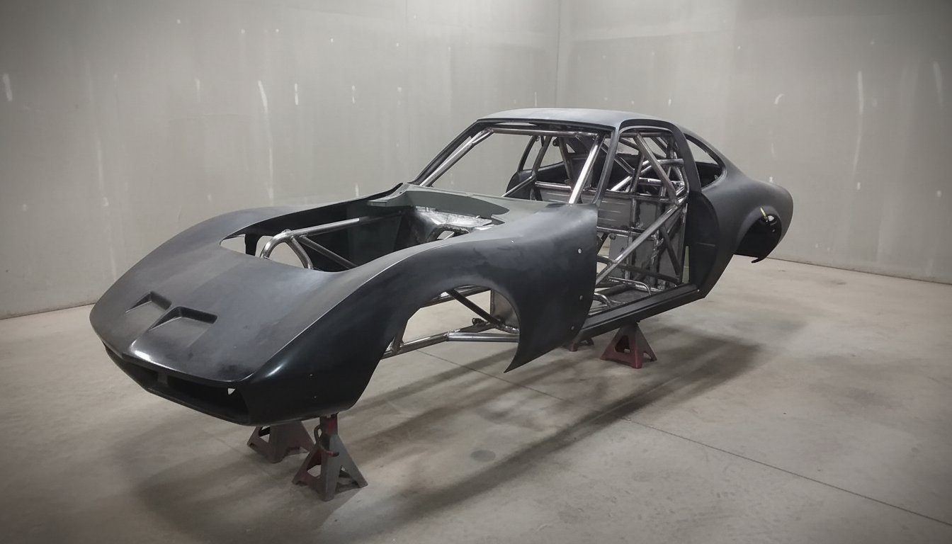 A 1971 Opel coupe being built as a custom drag racing project, offered with a steel body and a small-tire drag setup. The build plans include a big-block Chevy with nitrous, a TH400 transmission, and a 9-inch rear end, creating a strong foundation for a high-performance drag car that a buyer can finish to their specifications. SEE FULL BUILD iCanFab.com